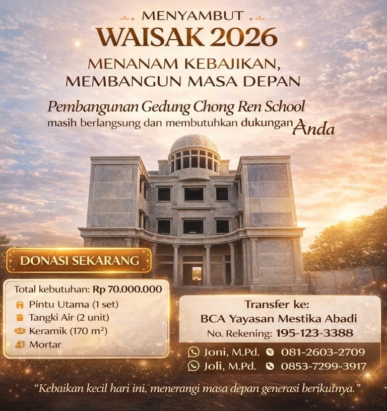Berapapun nilai donasi sukarela setulus hati mendukung pembangunan Chong Ren School, Setiap bantuan Anda adalah langkah nyata membangun masa depan generasi
